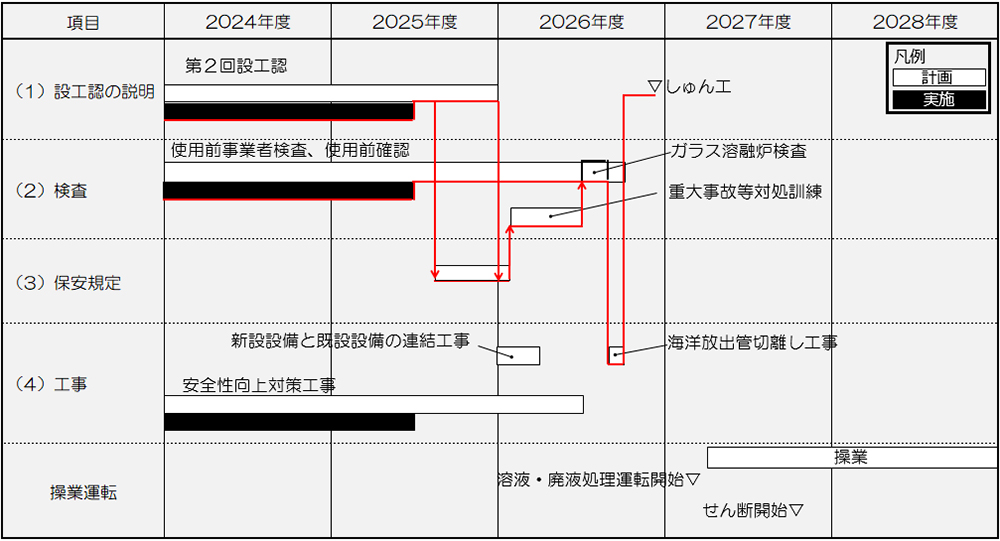 再処理工場の設工認の説明、検査、保安規定、工事の各項目における計画に対する状況は以下の通りです。