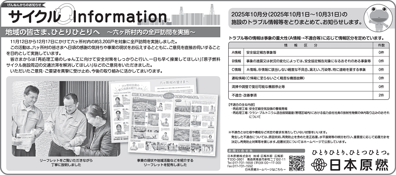 地域の皆さま、ひとりひとりへ ~六ヶ所村内の全戸訪問を実施~(約2.5MB) - 2025年11月24日掲載分