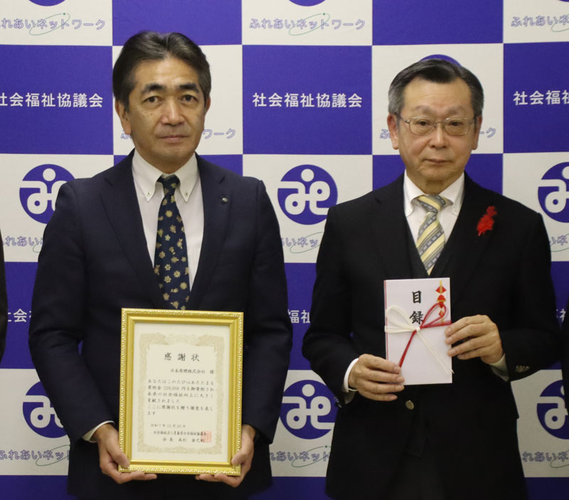 青森県社会福祉協議会 高杉会長(写真右)へ寄付金の目録を贈呈