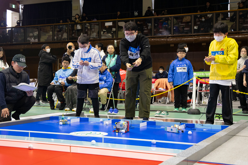 チーム内で役割を分担し、協力しながらロボットを操作する頭脳的な試合が繰り広げられ、子ども達の独創的なアイデアと、巧みな操作技術に観客からは盛んな拍手が送られていました。