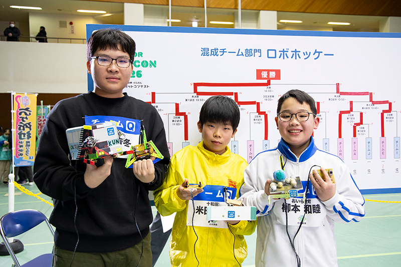 | 優勝 | チームQ 米田 修平(まいた しゅうへい) 十和田市少年少女発明クラブ 齋藤 青冬(さいとう あおと) 弘前市少年少女発明クラブ 柳本 和睦(やなぎもと かずちか) おいらせ町少年少女アイデアクラブ |