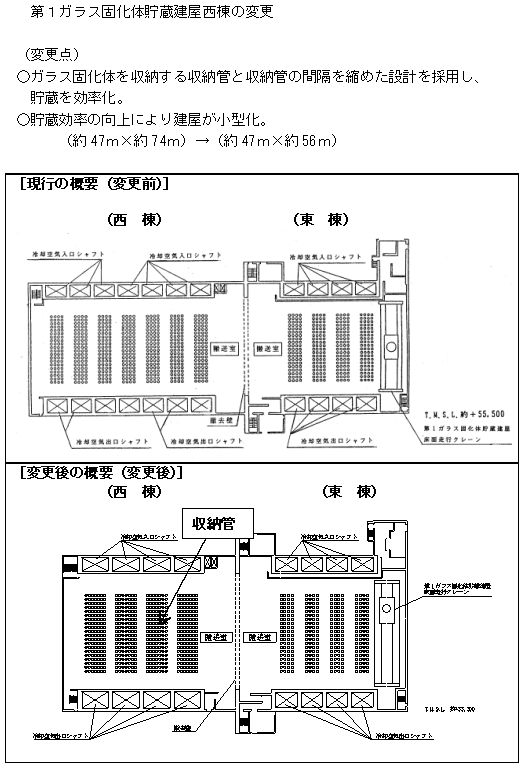 (2)小型試験設備の計画変更 (3)第1ガラス固化体貯蔵建屋西棟の変更 (4)再処理事業所内の各施設からの固体廃棄物受入れに係る変更 (5)社有地に係る記載の変更 敷地における建屋配置を別紙−4に示します。 なお、新たに増加する工事費は約540億円です。 別紙−1