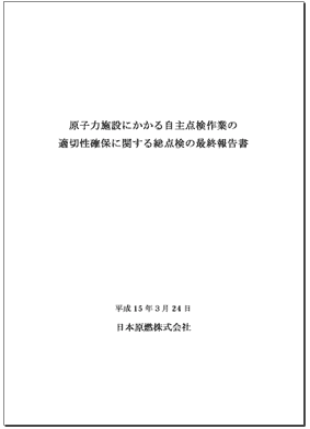 当社は、「原子力施設にかかる自主点検作業の適切性確保に関する総点検」の経済産業省原子力安全・保安院からの指示に基づき、これまで操業中の施設について総点検を実施してまいりました。